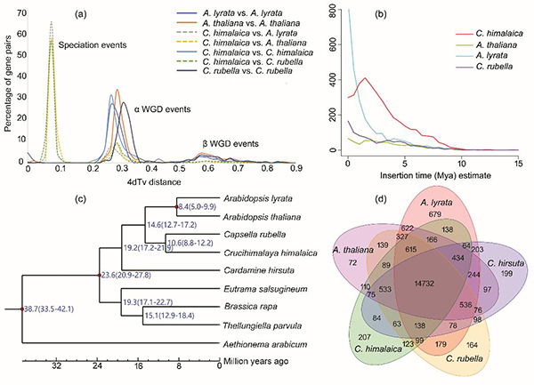 图1 须弥芥与近缘物种基因组比较和进化分析