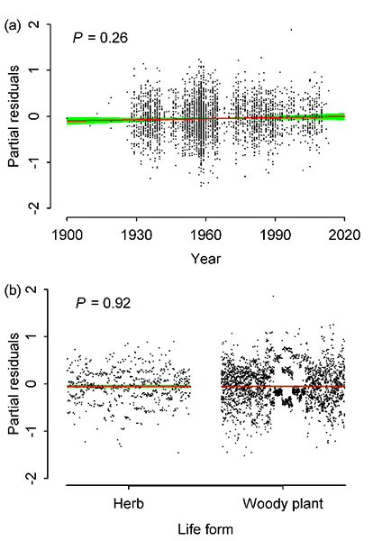 传粉者在生物多样性的维持、陆地生态系统的服务功能和农业生产等方面都发挥着重要的作用,但大量的研究表明传粉者(特别是蜂类)的多样性和丰富度在过去百年存在显著的降低趋势,而传粉者降低究竟如何影响野生植物的种子产量仍然缺乏证据。前期的调研发现:豆科植物的标本数据是研究种子数量历史动态变化的理想材料。首先,豆科植物果荚内的种子数量可以在不破坏标本的前提下准确的获得。其次,传统的豆科植物分类主要依据花的形态分为三个亚科,可以反映植物与传粉者的三种相互关系。其中含羞草亚科植物的花为辐射对称的开放花型,可认为具有较为泛化的传粉系统;蝶形花亚科则为严格的两侧对称花,可认为具有较为专化的传粉系统;而云实亚科植物的花则介于两个亚科之间。虽然最新的分类系统已经将豆科分为六个亚科,但考虑到花结构在植物与传粉者相互关系的重要作用后,本研究仍然采用了传统的豆科分类系统。因此,在全球传粉者多样性和种类降低的背景下,三个亚科植物的种子数量应该呈现出不同的时间变化趋势。一个较为合理的假设是:具有专化传粉系统的蝶形花亚科植物的种子数量可能表现出降低的趋势,而具有较为泛化传粉系统的含羞草亚科和云实亚科植物的种子数量可能表现出降低、不变或者增加的趋势。 为检验这一假设,中国科学院昆明植物研究所杨永平研究员带领的植物基因组演化与基因功能发掘团队与中国科学院植物研究所、云南师范大学、云南大学和西藏自治区高原生物研究所合作,查阅了存放于中国科学院昆明植物研究所标本馆(KUN)和中国科学院植物研究所(PE)的2万余份豆科植物标本,记录了每份含果实标本上一个果荚内的种子数量,在经过去除重复、去除自交物种、去除因样本量小而无统计意义的数据后,共获得了109种豆科植物4637个关于种子数量的数据,这些标本最早采于1900年,最新采于2013年,时间跨度超过30年的物种为101个。统计结果表明,只有13个物种的种子数量在近些年表现出了显著的变化趋势,其中9个物种的种子数量显著增加;三个亚科植物的种子数量并没有表现出一致的变化趋势,而在蝶形花亚科中,种子数量增加的物种数要高于降低的物种数。显然,研究结果表明豆科植物与传粉者的相互关系在近些年来并没有被严重干扰,至少在中国是这样的情况。本研究一方面表明植物与传粉者的相互关系比研究团队想象的要更加复杂,而另一方面则为如何利用标本数据开展研究提供了一个新的思路。 研究成果以“A century of pollination success revealed by herbarium specimens of seed pods”为题在线发表于New Phytologist杂志上。本研究得到了中国科学院战略性先导科技专项和国家自然科学基金等项目的支持。