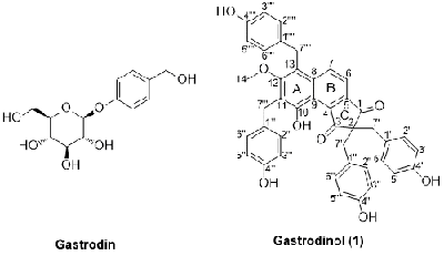 现代应用中药天麻来自兰科(Orchidaceae)天麻属(Gastrodia)多年生腐生植物天麻(Gastrodia elata Blume)的干燥块茎,功能息风止痉,平抑肝阳,祛风通络。用于小儿惊风,癫痫抽搐,破伤风,头痛眩晕,手足不遂,肢体麻木,风湿痹痛。天麻属植物全球约有20余种,分布于亚洲和大洋洲的热带以及亚热带地区,我国以云南、四川、贵州、陕西、湖北、安徽等地为主要产区,云南产区主要分布在昭通和丽江,有昭通乌天麻地理标志产品。 中国科学院昆明植物研究所天然药物新药研发团队周俊课题组一直专注于天麻中活性成分的挖掘。上世纪七八十年代,条件异常艰苦的情况下,周俊等通过对天麻主要成分的药学研究,从中发现了治疗头痛、失眠的有效成分天麻素(gastrodin, figure 1),随后开展了合成天麻素的研究,1980年转让给昆明制药厂,生产至今,创造了很好的经济效益。天麻的化学研究与主成分的确定为天麻产业发展提供了有力的科技支撑。 近年来,为了进一步挖掘天麻中的活性成分,借鉴天麻的传统应用历史以及对应药用部位,研究人员对天麻的茎秆进行了细致的研究,最终分离得到了具有新颖结构骨架的(gastrodinol, figure 1)。从结构上看,gastrodinol含有一个独特的6,6,5熔合的三环骨架(一个萘环和一个重排重构的C环部分),初步药理活性显示gastrodinol 具有较好抗菌活性。考虑到gastrodinol新颖的结构骨架和良好的活性,研究人员对其进行了全合成研究。