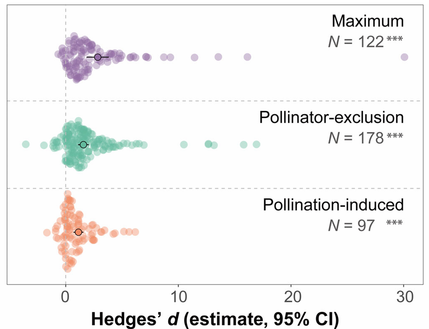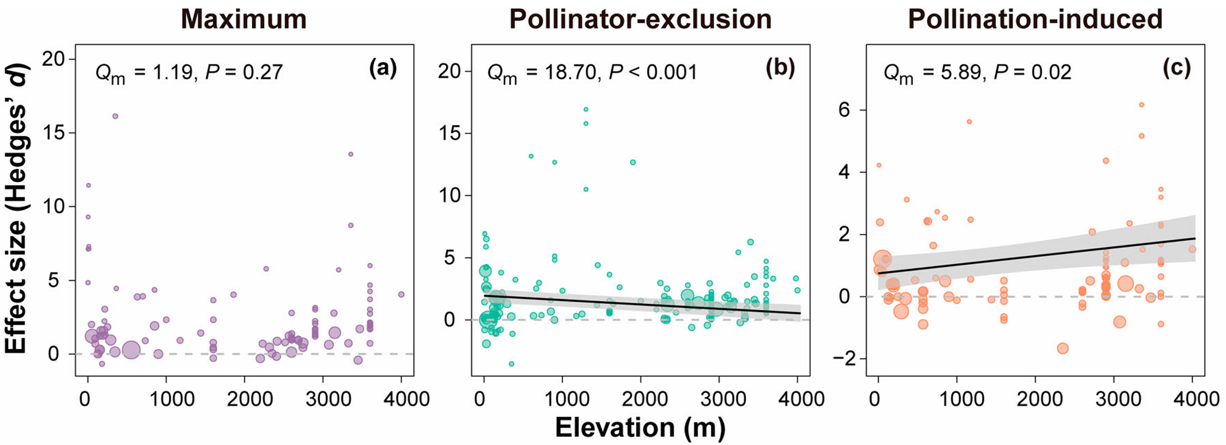 图1 三种花寿命可塑性的总体效应值