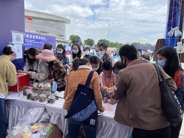 5月21日,由云南省科技厅、中共云南省委宣传部、云南省科协、大理州人民政府共同主办的2022年云南省科技活动周启动式在大理市举行,中国科学院昆明植物研究所昆明植物园受邀参加本次开幕式的主场科普集中示范活动。本届科技活动周以“走进科技 你我同行”为主题,共有79家单位在主会场参展,设立展位120个,涉及生物多样性、无人机驾驶航空器、5G智慧工业、现代农业示范等领域科技创新成果、健康科普活动、科普知识展示、科技为民服务等。 ▲ 会场 昆明植物园展示了云南省极小种群野生植物综合保护重点实验室的研究成果,同时展出了漾濞槭、喙核桃、金钱槭等极小种群野生植物的果实、种子和组培苗。工作人员现场为公众讲解了极小种群野生植物的拯救保护措施与模式,制作组培苗的步骤流程,及植物园在生物多样性保护方面的重要作用和影响。还推出“植物知识趣味问答”,题目囊括植物学、生态学、保护生物学等有关知识,公众通过随机抽取题目,在思考和寻找答案的过程中了解和学习生物多样性保护。