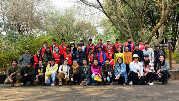 为深入学习、领会并贯彻党的二十大精神,迎接即将到来的昆明植物园首届杜鹃花展,中共中国科学院昆明植物研究所昆明植物园党支部联合园区工作人员及熊蜂联盟志愿者,于2月15日,共同开展了羽西杜鹃园集体劳动。本次集体劳动,主要由植株修枝、枯枝清理以及水肥灌根三部分事项组成。活动当天有近40人参与,经过大家共同努力,羽西杜鹃园园容园貌得到提升改善,为后续杜鹃花植株叶面补肥及病虫害精准防治提供了有力铺垫。 集体劳动当天,风和日丽,春日暖阳映衬着杜鹃花初露的花蕾。在初花期进行修剪作业对技术要求较高,因此这部分劳动主要由昆明植物园的科技工作者进行。大家大都自带专业的修剪工具,在羽西杜鹃园逐片推进作业,在尽量保证后期开花效果的情况下,向着健康植株株型的目标进行修剪。
