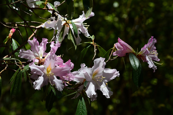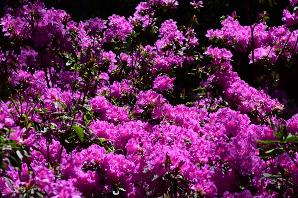 4月15日,以“杜鹃漫道堆锦绣 绿水青山沐春风”为主题的中国科学院昆明植物研究所昆明植物园首届杜鹃花展顺利结束。本届花展从3月5日开始,至4月15日,为期50天,花展地点主要在昆明植物园内的羽西杜鹃园。 盛花期的羽西杜鹃园 本次花展共展示了70余种中高海拔的杜鹃花原生种,其中有大白杜鹃、云锦杜鹃、羊踯躅、马缨杜鹃、红马银花、长柱睫萼杜鹃等20种杜鹃盛放。此外,本次花展不仅展出了200多个园艺品种,同时展出了昆明植物所自主产权的10余个杜鹃花品种,杜鹃园被多姿多彩的杜鹃花色所装点。