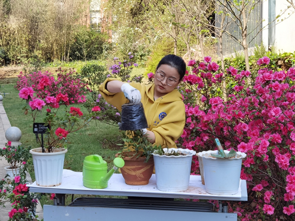 羽西杜鹃园里的部分杜鹃花:1. 马缨杜鹃Rhododendron delavayi;2. 露珠杜鹃Rhododendron irroratum;3. 睫毛萼杜鹃Rhododendron ciliicalyx;4. 大白杜鹃Rhododendron decorum 花展期间,昆明植物园推出了丰富精彩的科普活动,成功了举办了“SCA科普讲坛——杜鹃花科研保育及文化观赏价值系列讲座”,一共开展三期,分别为马永鹏研究员的《中国杜鹃花属植物的资源利用与保护》、魏薇助理研究员的《家养杜鹃花的栽培与养护》和施银仙助理研究员的《以杜鹃花为代表的云南以及世界食花文化概览》。同时,在羽西杜鹃园休息小平台,开设了杜鹃花历史文化科普展,并展示了云南省农科院自主培育的高山杜鹃品种,为花展增添了气氛。在“三八节”当天,还有全体女性可免费入园(不含扶荔宫)的福利大放送。