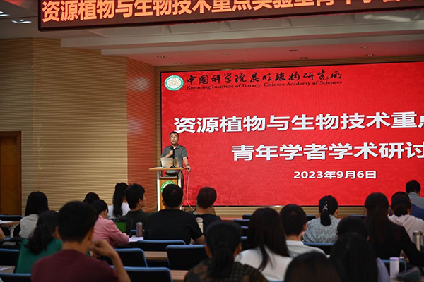 为加强青年学者学术交流与合作,搭建优秀青年人才交流互鉴平台,激发青年科技人才创新活力,9月6日,中国科学院昆明植物研究所资源植物与生物技术重点实验室(云南省野生资源植物研发重点实验室)举办青年学者学术交流研讨会。本次交流研讨会主要邀请资源室40岁以下青年学者(助理研究员、副研究员等科研人员)作学术报告。会议由昆明植物所副所长兼资源室主任吴建强、资源室副主任张石宝和吴劲松主持,100余名师生参加了此次学术研讨会。 活动伊始,吴建强代表资源室致辞。他全面分析了资源室目前的人员组成结构情况,指出资源室青年学者特别是40岁以下的人员数量占比较多,各专题组及研究室对该群体的培养责任重大,希望通过此次学术交流研讨会,为青年学者搭建学术交流平台,促进青年学者之间的合作交流及资源共享。
