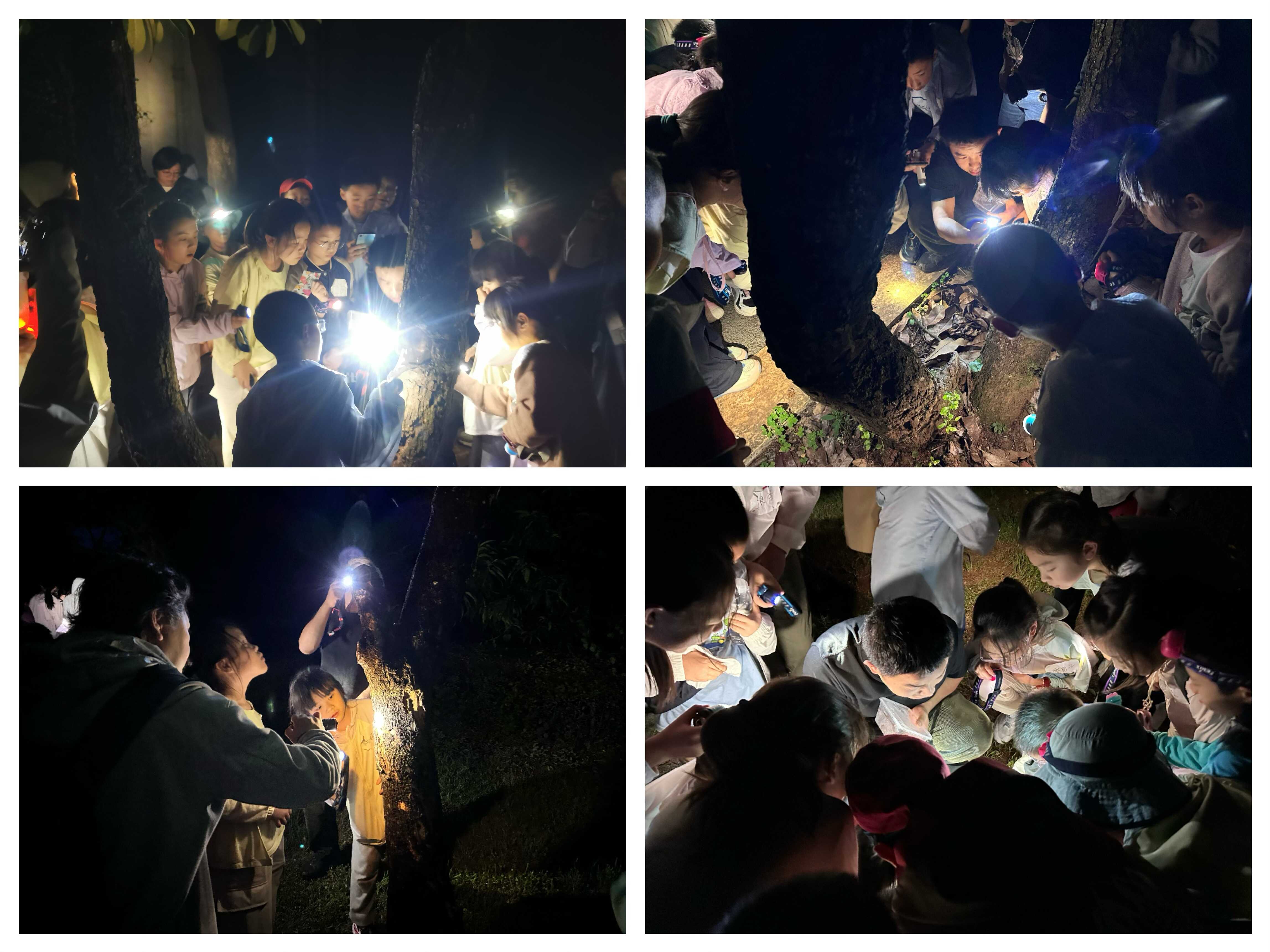 当夜幕降临植物园,“小侦探”们手持探灯,开启了神秘而兴奋的夜巡,寻找土壤的生命张力。在静谧的夜色中,他们屏息凝神,轻轻拨开落叶层,探寻枯木和土壤表层活跃的“夜班工作者”,各种节肢动物在腐殖质中若隐若现。这堂生动的夜间自然观察课,让孩子们直观感受到土壤作为庞大生命库的活力,理解了即使在人类沉睡时,脚下这片土地依然生机勃勃,演绎着不可或缺的生命循环。