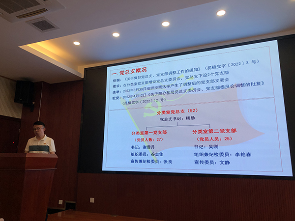 为传承红色基因,赓续精神血脉,凝聚奋进力量,引导全室党员不忘初心牢记使命,同时为深入学习贯彻习近平新时代中国特色社会主义思想尤其是总体国家安全观,6月2日,中共中国科学院昆明植物研究所分类室党总支组织召开以“探寻先驱足迹,重温热血征程 学习安全理念,护卫国家稳定”为主题的党员大会暨支部书记讲党课活动。党总支书记杨扬同志主持,分类室党总支全体党员参加。 会上,杨扬同志简明扼要地为党员同志们介绍了分类室第一、第二党支部支委会构成,及2022年计划内工作。他系统清晰的介绍使大家对支部工作安排有了进一步了解,有利于各项支部工作顺利开展。