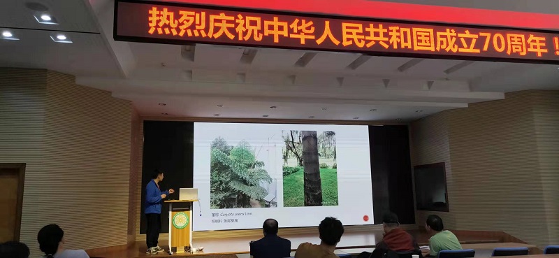为庆祝中华人民共和国建国及中国科学院建院七十周年,积极开展“云岭职工跨越发展先锋活动”和“云岭职工人才工程”(以下简称“一活动一工程”),提高昆明植物所职工队伍整体素质,所工会于9月30日举行昆明植物所2019年健步走暨游园认植物活动。 今年的全所健步走活动安排在国庆前夕举行,为整个活动平添了浓厚的喜庆氛围。30日上午十点,全体参与活动的职工及研究生在办公楼前广场整装待发,大家喜气洋洋,都希望通过一起运动的形式迎接祖国七十年华诞。随着杨永平书记的一声号令,健步走活动开始了!整个队伍人头攒动,往前行进,大家有说有笑,好不热闹。健步走的路线仍然是昆明植物所的经典路线,从行政楼爬坡到标本馆,经过银杏林到百草园门口,并进入植物园的游览环线;继续往前至枫香大道,途经扶荔宫到裸子植物区,最后回到雪松大道下坡,到达所文化广场结束。通过健步走活动,职工和研究生的身心都得到愉悦和放松,也感受了研究所欣欣向荣的科研氛围和活力,更为祖国的科研事业鼓足了干劲! 同时,今年还安排了一项特别活动:游园认植物。植物研究所的工作特色是植物科研,对很多职工和研究生来说,“认植物”既是专业又是兴趣所在。因此,为响应云南省“一活动一工程”的号召,提高我所职工队伍整体专业素质,今年所工会结合健步走活动,首次举办“游园认植物”活动。虽然是首次举办,但活动的报名却十分踊跃,最终报名人数超过七十人。活动分为三个小组,均由资深的植物分类学家或富有建树的青年分类学者带队,每队成员都在二十人以上。三个小组分别前往省林科院树木园、黑龙潭公园和昆明植物园进行游园认植物。为保证活动的丰富性和趣味性,在出发之前,在行政楼报告厅安排了两场精彩的科普报告:“认植物与植物分类”和“云南的植物采集发现史”,分别由彭华研究员和方伟工程师为大家讲授。在游园结束后,三个小组又回到报告厅,进行“认植物”PK大赛以及三个小组的认植物汇报分享。一天的活动,从早上到下午,大家都踊跃参与,求知若渴,交流互进,“游园认植物”取得圆满成功!