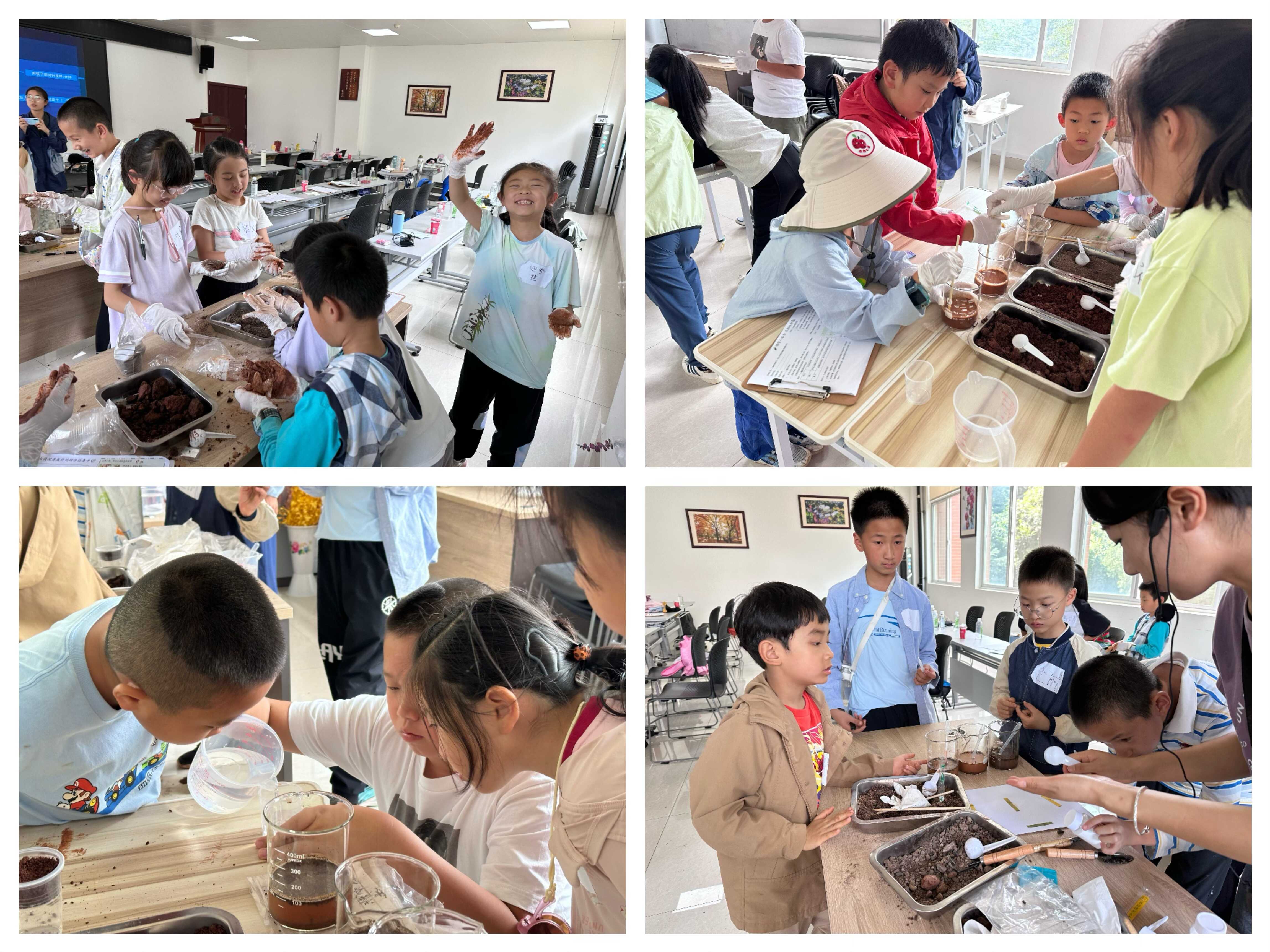 下午,科学教室变身“侦探技术中心”。小侦探们运用专业工具,进行土壤物理特性检测,感受不同土壤的颗粒感与孔隙结构;通过保水性实验,直观理解土壤像海绵般吸水与保水的关键能力,认识到这直接关系着植物能否“喝饱水”;酸碱度检测则揭示了土壤的“性格”(酸性、中性或碱性),孩子们恍然大悟:原来不同的植物喜欢的土壤“口味”不一样啊!这些动手实验将抽象的科学原理转化为可触摸的真相,深化了对土壤功能的认识。