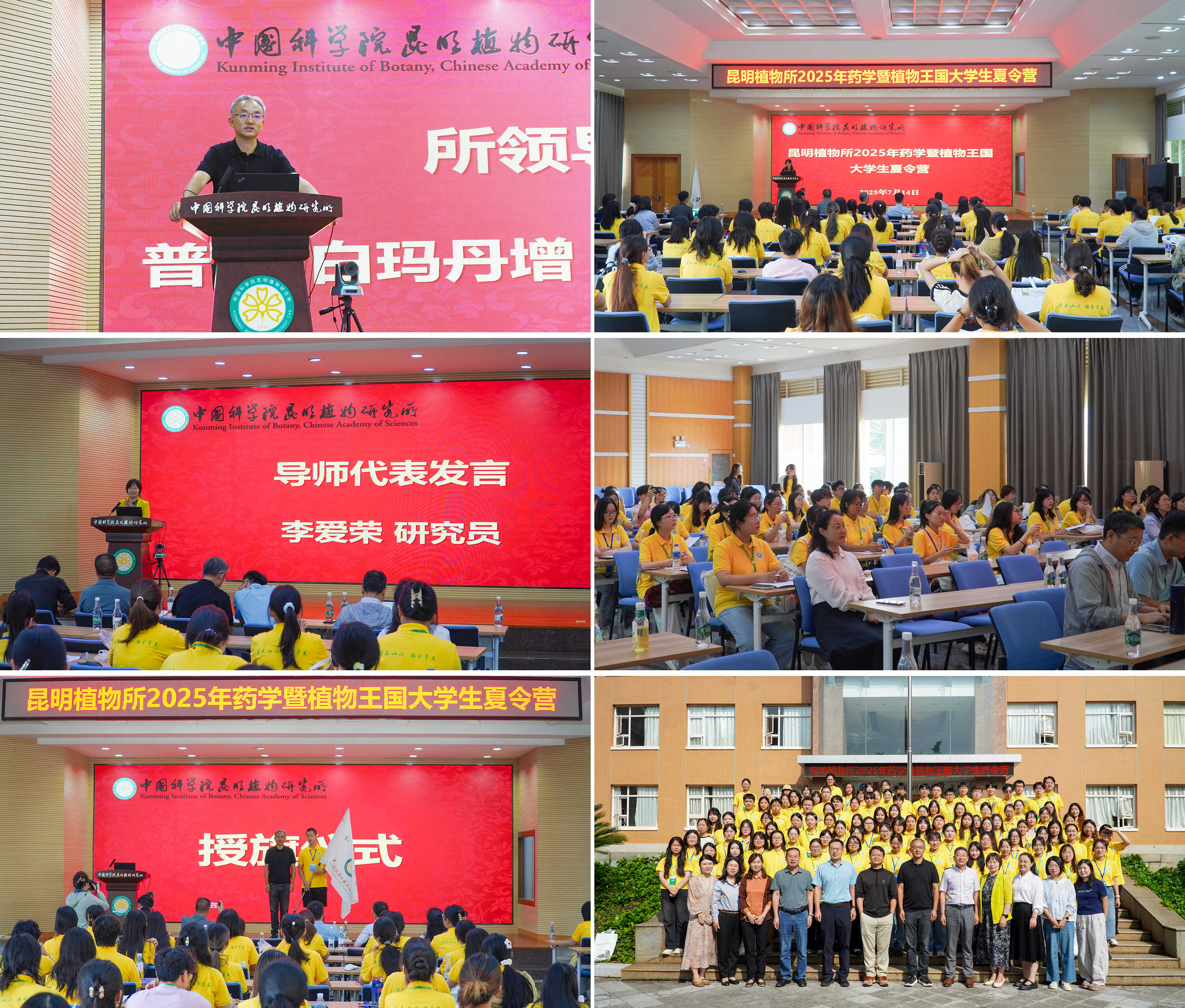 7月13日至17日,中国科学院昆明植物研究所成功举办了“2025年药学暨植物王国大学生夏令营”。来自全国60余所高校的110余名优秀学子齐聚春城,在这座闻名遐迩的“植物王国”中,开启了一场为期四天的科研探索与学术交流之旅。 开营启程,点燃科学梦想 7月14日,所长、各研究室领导、导师代表及全体营员共同出席夏令营开营仪式。在观看完研究所宣传片后,所长普诺·白玛丹增发表了热情洋溢的欢迎辞,勉励青年学子珍惜机会、深入探索。导师代表和优秀在读研究生代表分享了科研感悟,营员代表则表达了对此次科学之行的憧憬。研究生处处长李晓贤主持了开营仪式。庄严的授旗仪式和全体合影,正式拉开了本次夏令营的序幕。