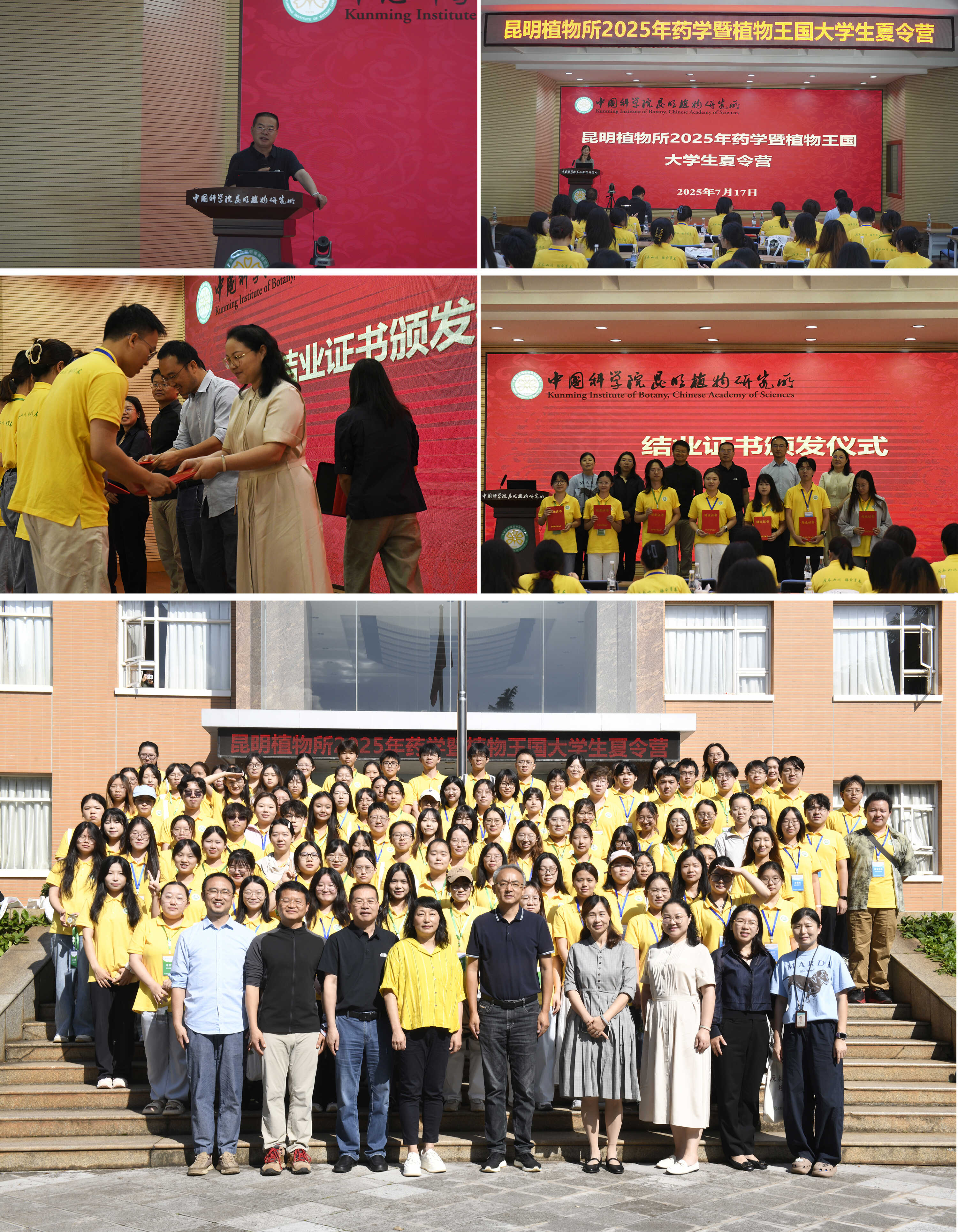 闭营仪式 在闭营仪式结束后,全体营员参观了中国西南野生生物种质资源库种子博物馆、所史馆及昆明植物园扶荔宫温室群。在郁郁葱葱的奇花异草和珍贵的种子标本中,同学们直观感受了我国尤其是西南地区丰富的植物多样性及其保护与研究的重要意义,加深了对研究所使命的理解。 本次夏令营活动组织内容丰富多彩,既有高水平的学术报告引领前沿,又有深入的实验室参观和科研实践体验。活动不仅拓宽了营员们的学术视野,激发了科研兴趣,也为全国优秀大学生了解昆明植物所、投身植物科学与药学领域的研究搭建了重要桥梁。青春与科学的火花在此碰撞,为未来的科研之路播下了希望的种子。 |