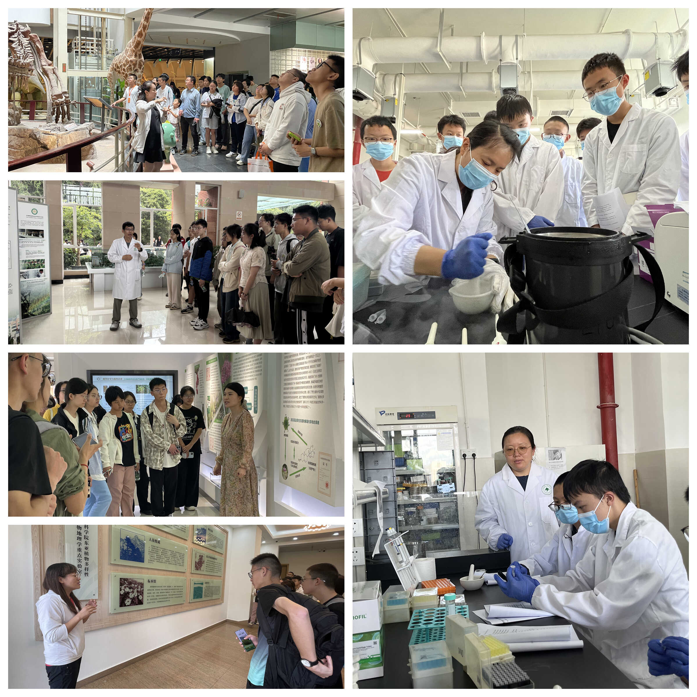 讲座现场 活动还组织了教练员教学与竞赛经验交流座谈,让部分参赛学生走进实验室开展生物学实验实践,以及到中国科学院相关科研院所参观学习。在实践课程中,参与学生完成了从设计实验流程到亲自进行植物叶片组织DNA和RNA提取,从规范使用移液枪、离心机等仪器,到分析电泳条带、撰写实验报告的分子生物学全流程实验,同学们真正体验了知识从书本到实践应用的转变。师生们先后参观了中国科学院昆明动物研究所的动物博物馆和相关实验室,中国科学院昆明植物研究所的植物化学与天然药物全国重点实验室、植物标本馆和中国西南野生生物种质资源库等。参与夏令营的师生进一步了解到云南省生物学研究现状和进展,激发学生们未来走上生物学科研领域的兴趣和信心。