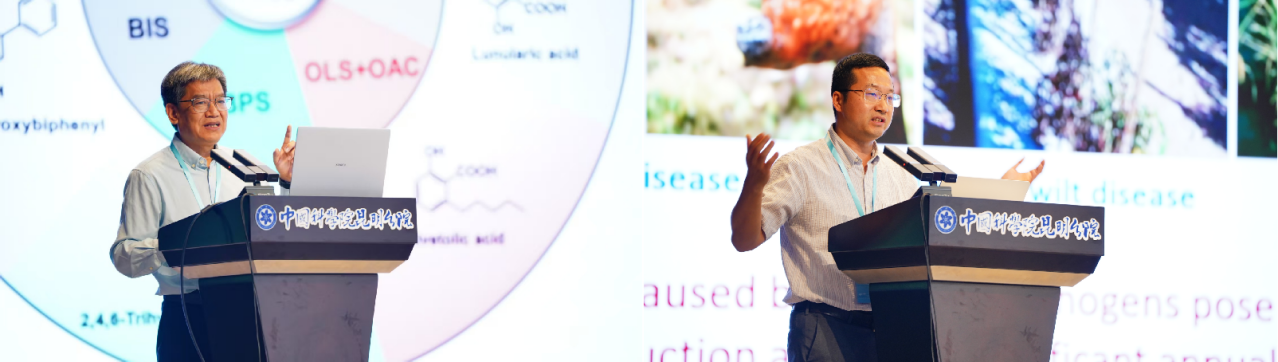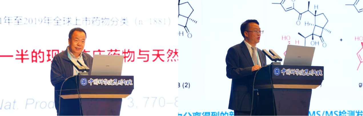 娄红祥教授、雷晓光教授作大会报告 开幕式后,由郝小江院士领衔主持报告交流。岳建民院士首先作题为“重要天然产物的发现和光介导的合成与修饰”的大会报告,为参会者带来了前沿的科学研究成果并引起大家深刻的思考;黎胜红研究员作题为“植物二倍半萜研究”的大会报告,向大家汇报了植物化学与天然药物全国重点实验室近年来取得的重要科研成果,以及植物二倍半萜研究的最新进展等,受到与会者的广泛关注。在接下来的两天会议中,来自全国各地的专家学者围绕会议主题进行了20余场精彩的学术报告。这些报告不仅展示了报告专家最新的研究成果,还展示了专家学者们“务实、求真”的科学研究精神,以科学问题和社会需求为导向的科学研究理念,激发了参会者对资源化学未来发展的深入思考,并展开了热烈的讨论。黎胜红研究员主持了7月27日的大会报告。娄红祥教授、雷晓光教授分别作题为“苔藓化学与生物学意义研究”“Translational Chemical Biology: from a Natural Product Perspective”的大会报告,向大家展示了最新的科学发现和研究进展,两位学者对科学问题的多维思考引起了参会者的关注与兴趣。会议交流高效并富有成果;邀请专门研究领域的代表性专家如:苔藓植物资源化学、海洋微生物、蕨类植物资源化学、民族药资源化学、中药资源化学、各类天然资源型化合物、化工资源化合物及化工产品废弃品的化学研究专家等,学科多样、代表性强。学术报告囊括了生物资源中化学物质分子的预测、分离、结构确定和活性功能等新研究方法及其成果,体现出资源化学研究及化学研究中分离和结构鉴定实验基本技能在取得研究成果中的重要作用。