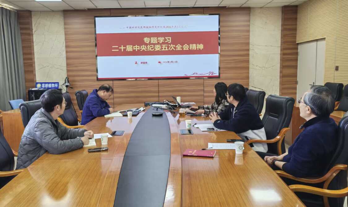 1月21日,中国科学院昆明植物研究所纪委召开2026年第一次会议,传达学习习近平总书记在二十届中央纪委五次全会上的重要讲话和全会精神。会议由党委副书记、纪委书记廖雷青主持。 廖雷青传达学习习近平总书记在二十届中央纪委五次全会上的重要讲话精神和会议精神。与会同志认真学习领会习近平总书记以更高标准、更实举措推进全面从严治党,为实现“十五五”时期目标任务提供坚强保障的战略部署。重要讲话高屋建瓴、内涵丰富,为深入推进全面从严治党和反腐败斗争提供了根本遵循。 会议还传达学习了中国科学院党组专题会议精神以及院长、党组书记侯建国对全院贯彻落实工作提出的三点要求。 与会同志一致表示,要深入学习贯彻习近平总书记重要讲话精神,认真履行全面从严治党主体责任,坚定不移贯彻落实党中央、院党组的重大决策部署,为实现“四个率先”和“两加快一努力”目标要求履职尽责,贡献力量。 会上,纪委副书记冯石作春节廉政提醒,通报了六起违反中央八项规定精神典型案例,明确按八个“严禁”工作要求持续深化落实中央八项规定精神。
