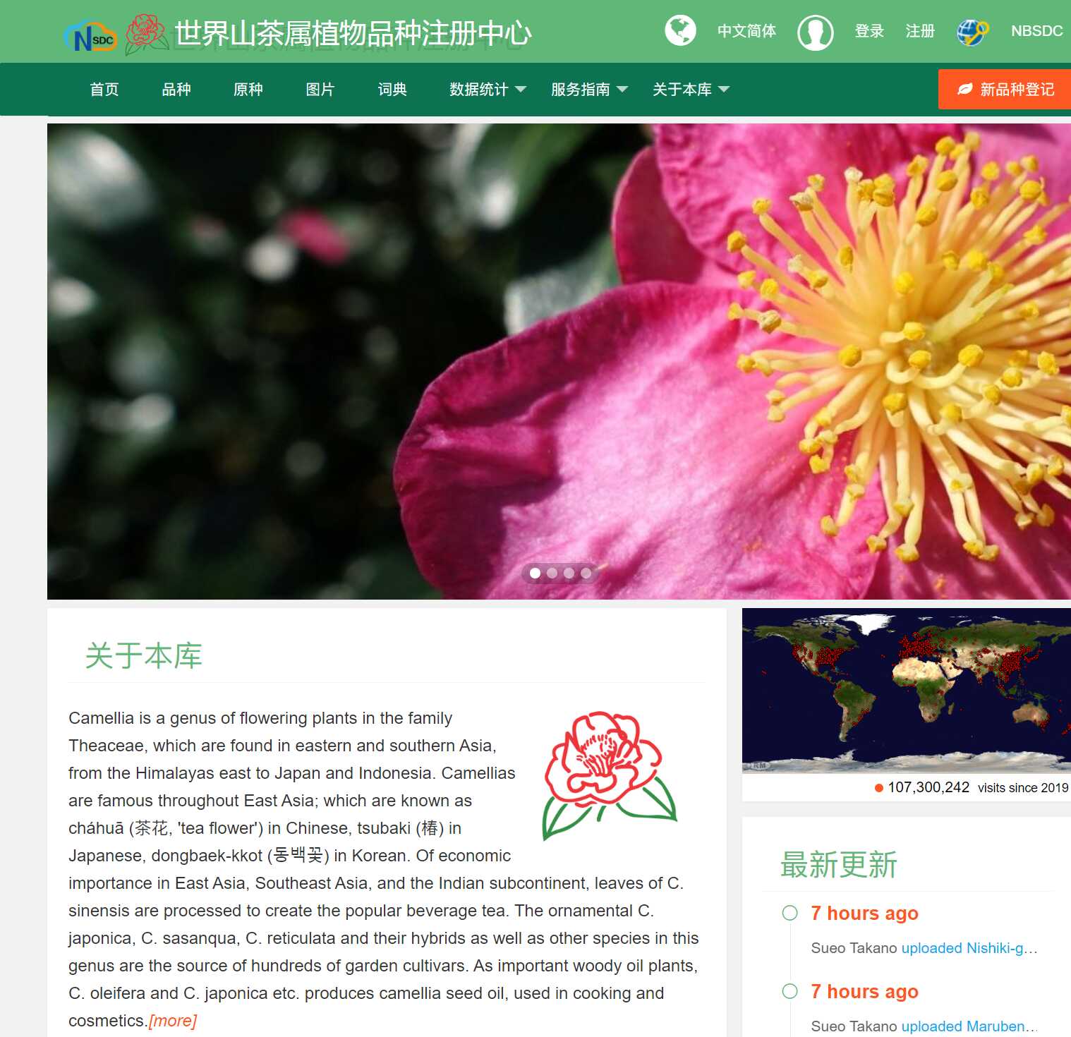 图1 2026年1月12日 世界山茶属植物品种注册中心数据访问量截图 据悉,该网站是由科技部国家基础学科公共科学数据中心资助、中国科学院昆明植物研究所主导建设、国际知名山茶专家合作完成的在线专业数据库。该库涵盖自1621年以来全球山茶属下的茶花、茶叶和茶油等所有品种信息,包含53070个已发表品种名称,其中接受名达27227个,并配有7.8万余张精美的图片等。每个品种包含接受名、异名、中英日三国语言的形态描述、品种来源、相关文献、培育国家和年份、亲本来源等重要数据,并建立了一套严格的数据审核与更新机制,为全球用户提供了一个免费、权威、全面、便捷的在线信息服务平台,有效解决了全球山茶属植物品种信息“碎片化”和“标准化缺失”的不足。 目前该网站已成为本领域世界多家行业机构认证的、权威的数据库,并先后成为国际合作的典范:国际园艺学会认证的山茶属植物品种的登录标准库,国际山茶协会、美国茶花协会等推荐使用的山茶属植物品种标准库,新版国际杰出茶花园评审方案中山茶属植物名称鉴定和植物标签的标准库,是中国科学院英文版官网推荐的科学数据库之一。此外,该库还获得了多个国内外重要奖项,获得了第十三届中国茶花博览会金奖,主持人王仲朗先后获得了国际山茶协会颁发的主席勋章和皇家园艺学会颁发的大卫·特雷汉山茶花杯等。